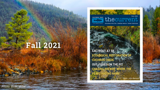 In our Fall 2021 issue of the Current, you will learn about our last fifty years and all that we have accomplished. We also travel to the North Coast to highlight our ecological restoration project on Cochran Creek. In What the Science Says, we hear from Dr. Miranda Tilcock on her fish eye studies and how that informs the diet of fish. We also show off the winners of our 2021 Photo Contest in the column Reflections. See below to check out these stories and read our latest issue today. (Top cover photo by John Bernard)